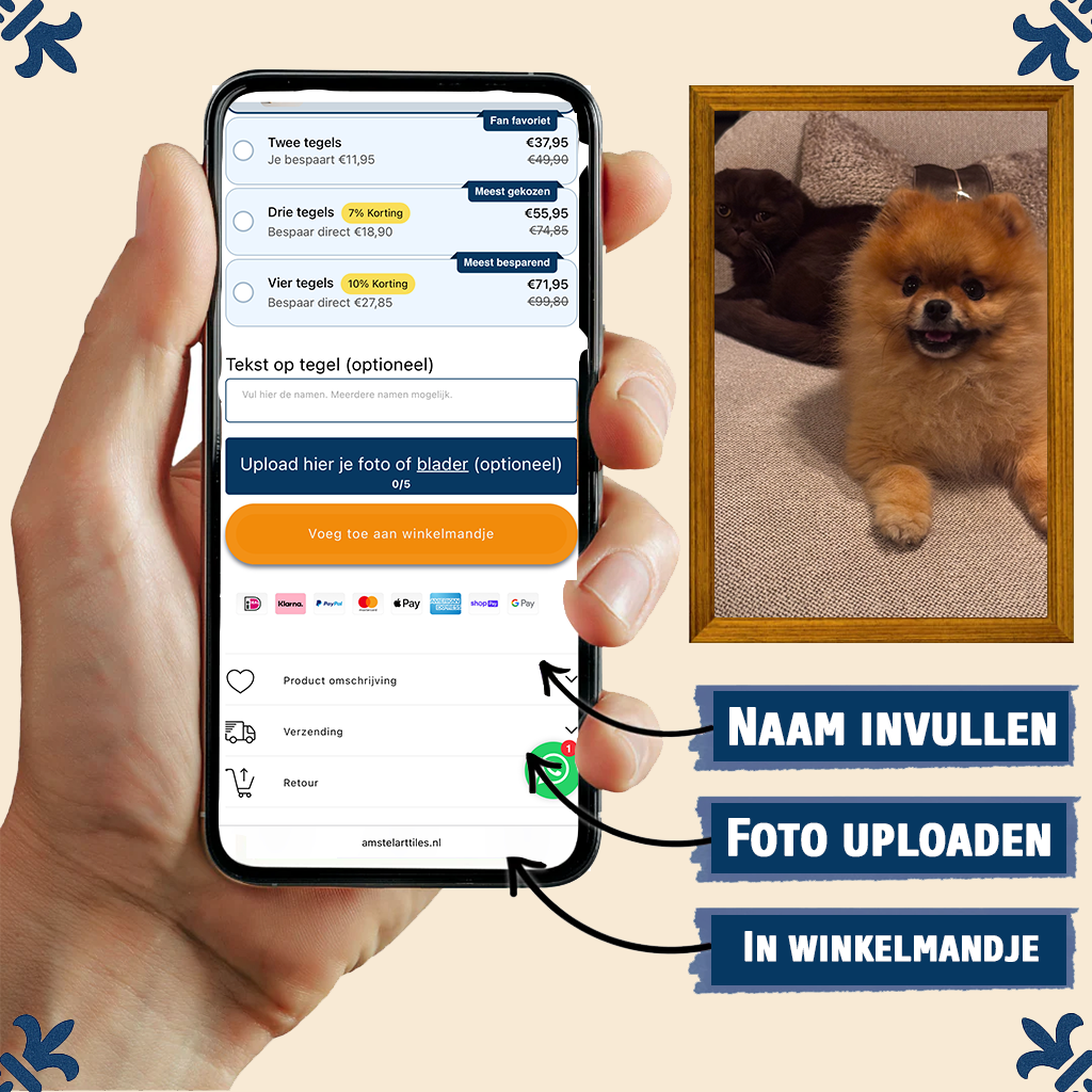 De tegels zijn precies geworden zoals verwacht. Ook de levering was snel. Fijn ook dat je van tevoren het resultaat kunt previewen.