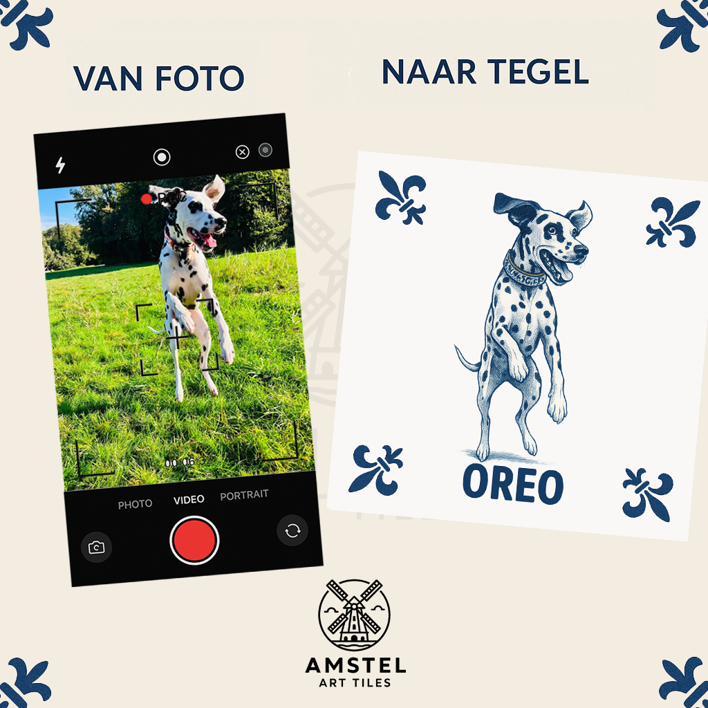 Echt prachtig! Onze Dalmatiër Oreo is echt prachtig op de tegel gezet. Geeft echt de persoonlijkheid weer van onze hond